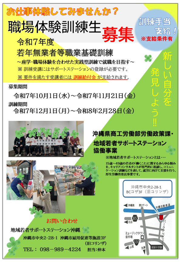 R7年度 若年無業者等基礎訓練 12月生募集のお知らせ