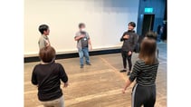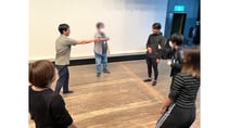3人ペアで一人がなりきったものに合わせて、何かになりきるワーク。