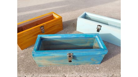 出来上がったら箱に、ニスを縫って、ペンキで仕上げです。自分で選んだ色のペンキ塗りを楽しんでいました。